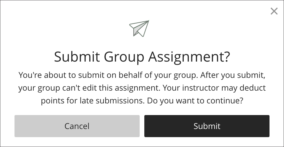 Example instructions to provide to students on how to submit a group assignment