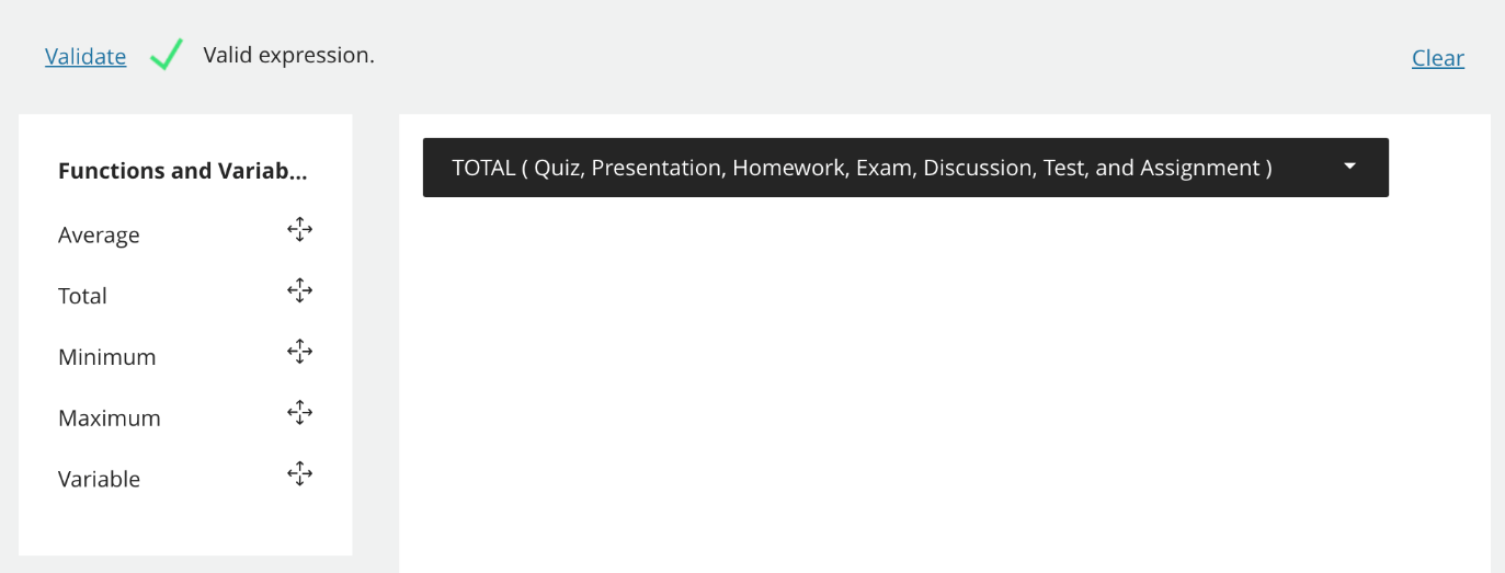 Click the Validate link above the Functions & Variables column to test your calculation. If it is configured properly, you will see a green check mark.