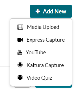 > Content Market > Kaltura Media LTI > </> Embed an existing recording or + Add New (e.g., Express Capture)