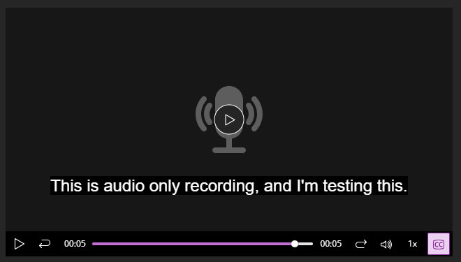 During playback, students can click on the purple CC icon in the lower right corner to access the automatically-generated closed captions.
