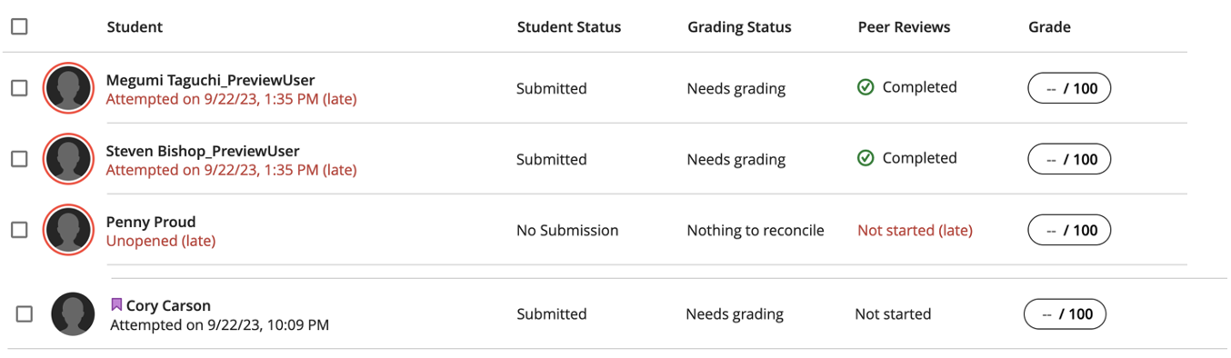 Due date accommodations: Students with due date accommodations may not receive a peer review, but can still submit and review a peer’s assessment. In this case, some students may have more reviews than other students.
