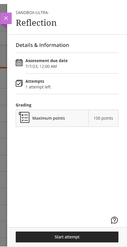 Review the Details and Information panel on the right for important information about the assignment. You will see: