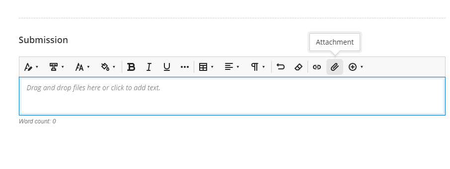 4. Click in the Submission field to use the editor to submit your assignment in the format requested by your instructor. Add your submission using the paperclip icon. Only your instructor can view the content you add.