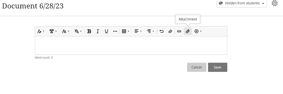 You can also upload a file to a Document by clicking on Add Content and then Attachment (paper clip icon)