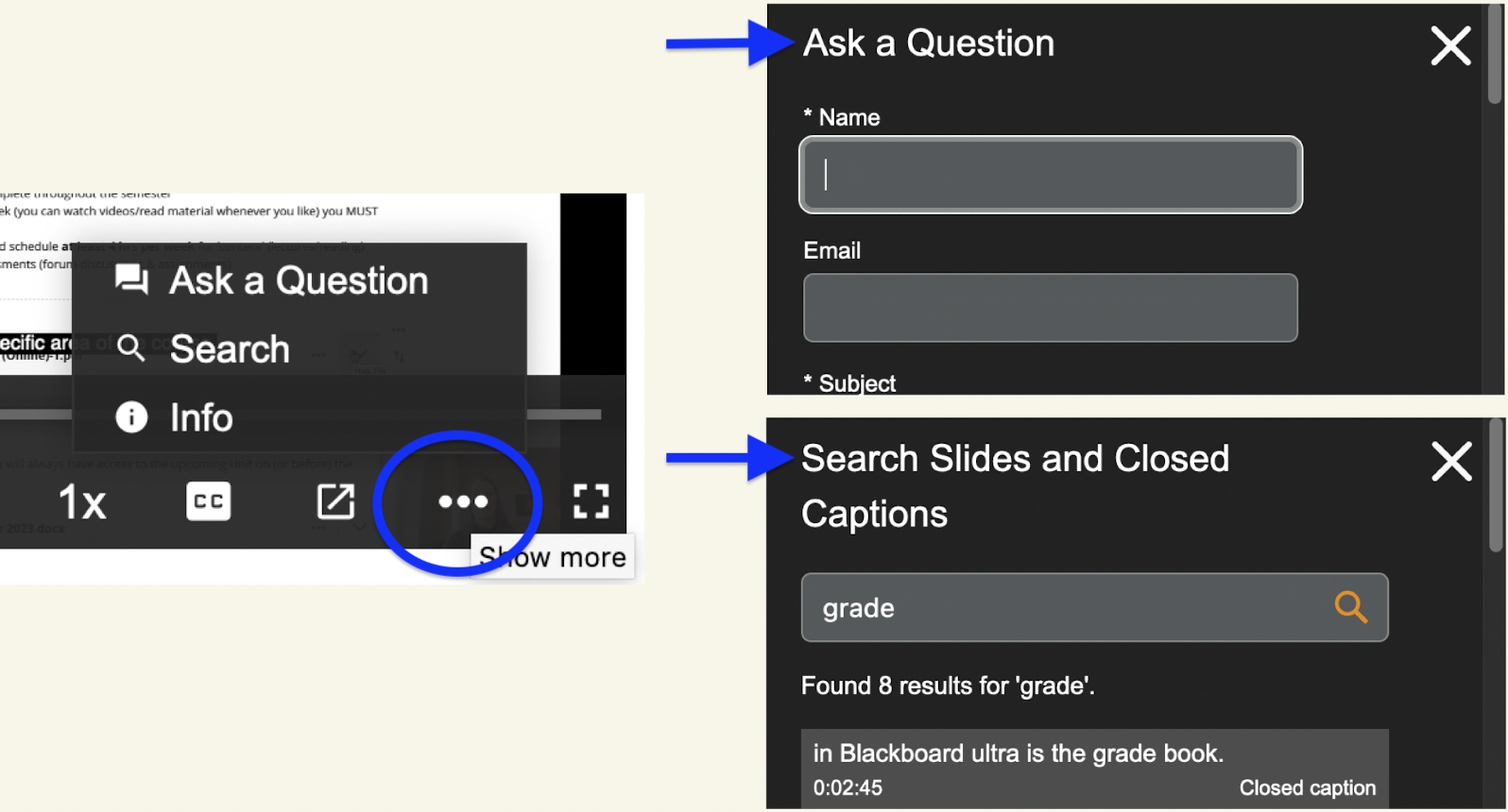 As you watch videos you are encouraged to click on the three dots below the video to ask a question (or make a comment) or to search the video.